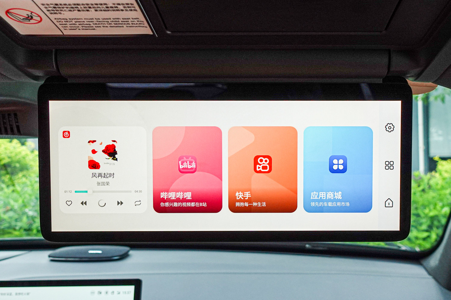 12.3英寸超感智慧屏代替了传统的遮阳板,兼具实用与娱乐功能。该屏幕提供哔哩哔哩、快手、音乐以及应用商城功能,方便副驾驶乘客在通勤过程中打发闲暇时光。值得一提的是,零重力座椅与12.3英寸超感智慧屏搭配使用,效果更佳哦。