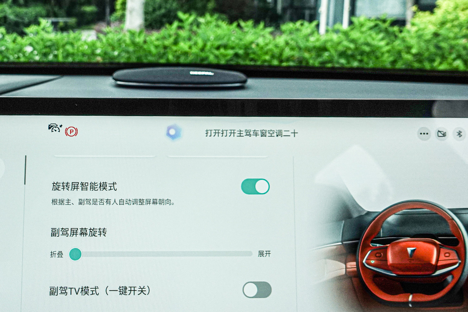 此外,还支持语音与专属按键一键触控调节,可实现0-135°大角度旋转调节。值得一提的是,副驾屏幕带有独立蓝牙通道,使用时不影响主驾。