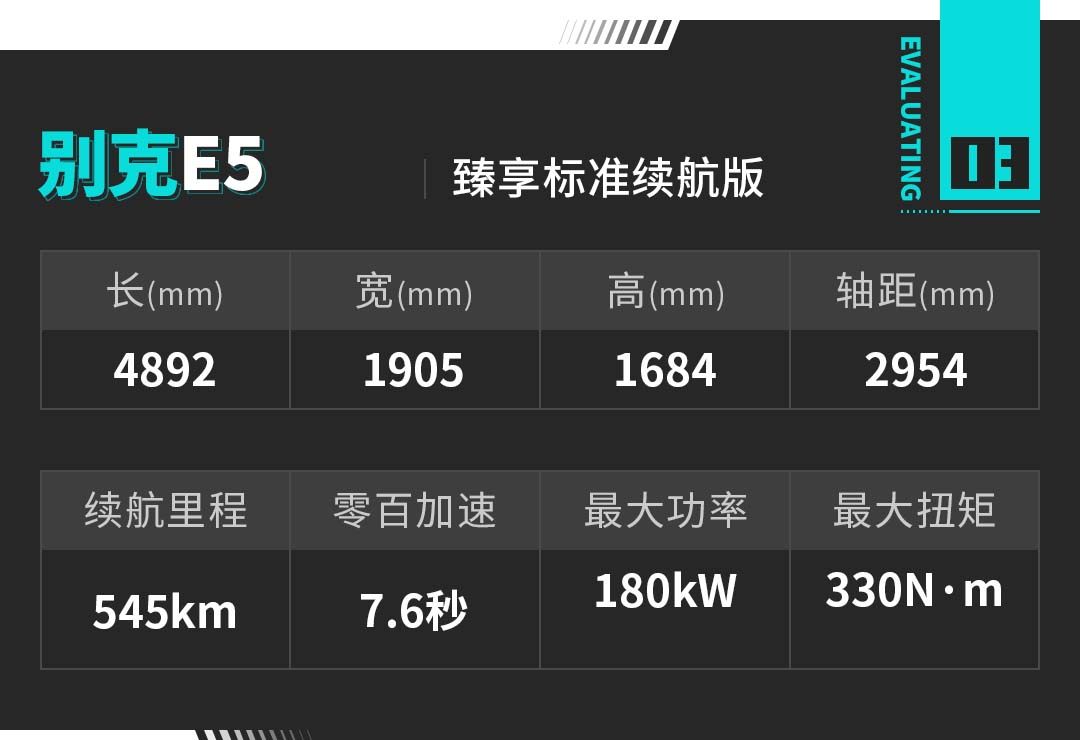 在聊试驾感受之前,教授想先跟大家回顾一下别克E5的行走系统。新车全系共有5款车型,共提供了单电机前驱/双电机四驱两种驱动形式、150kW/180kW/211kW三种动力性能,以及545km/603km/620km三种续航里程。