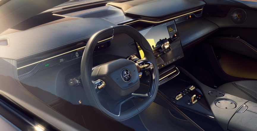 路特斯ELETRE的内饰在几款车型中算是比较有特点,它的整体风格更加贴近类似于兰博基尼等超级跑车的质感,整体的功能布局偏向运动风格。