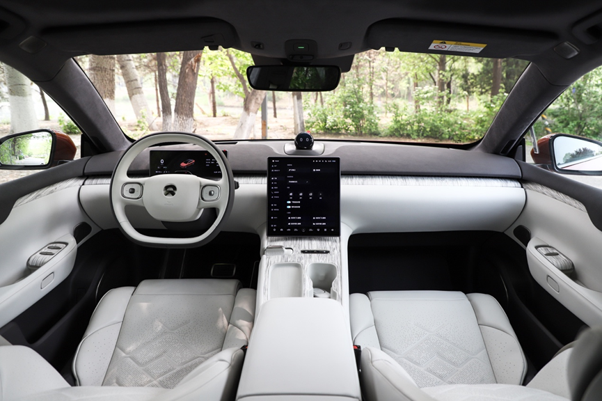 蔚来ET7的内饰保留了简洁的设计风格,这点与它的外观设计保持一致性步调,只是在设计感以及特点方面相比高合HiPhi Z城市版略差一些。