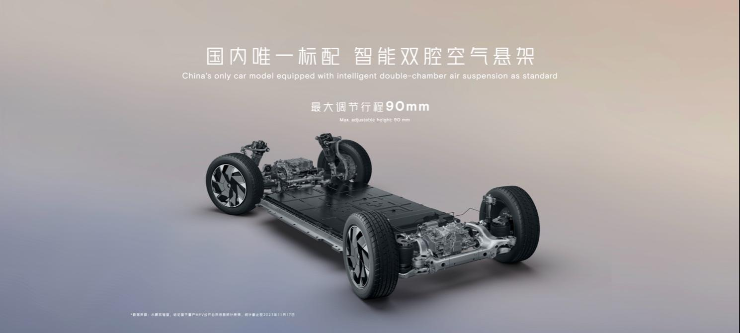 双腔空悬则是兼顾舒适、驾乘及便捷性的利器,也是家庭MPV的底层需求。小鹏X9配备了智能双腔空气悬挂系统,最大调节范围可达90mm,用户可手动选择不同的档位改变车身高度,进而提升续航能力、通过性、操控性等。智能双腔空气悬挂系统还可实现舒适的震动过滤,可在毫秒内做出响应、自动匹配适当的阻尼并调整,融合车辆上多个传感器信号,可有效提升高频低幅、细碎振动的隔绝优化,无论是平整的柏油路,还是坑洼的碎石路,底盘均能高效过滤路面的振动,将细碎的颠簸有效隔离,为车辆带来更平顺的行驶体验。