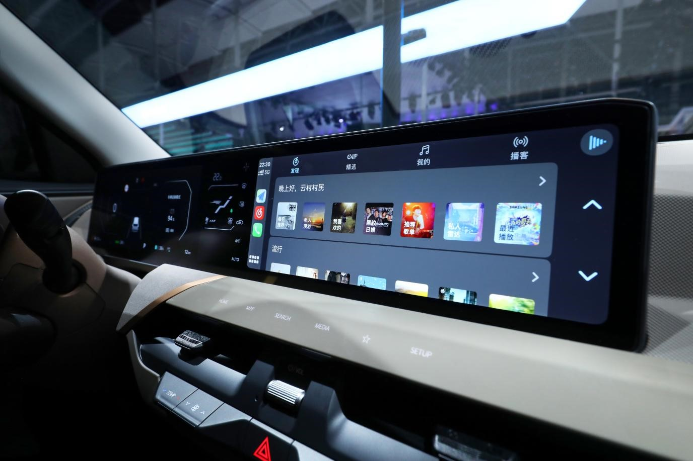 智能科技方面,EV5标配了由12.3英寸仪表盘+12.3英寸中控屏+5英寸独立空调控制显示屏组成的27英寸级一体式三联屏,长续航版本还配备了12英寸抬头显示(HUD),营造出沉浸式的驾驶体验。此外,EV5首次使用了新一代ccNC智能互联娱乐系统,同时支持CarLife和无线CarPlay、双区语音控制、WIFI热点、实时在线导航等功能;并通过和百度、腾讯两大科技巨头公司合作,开发了车载微信、爱趣听,以及数十款实用APP的腾讯小场景,涵盖了音频、视频、游戏、生活服务等方面,且支持OTA整车远程升级,常用常新,带来便捷且充满乐趣的智能交互体验。此外,EV5还提供了Kia Connect服务,包含了远程控制、车家互联、充电服务、车辆诊断、紧急救援等。