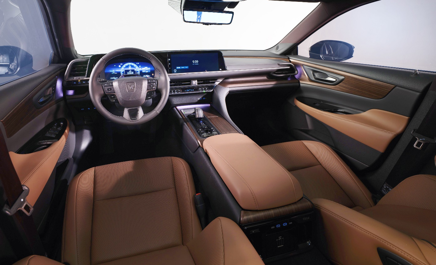 内饰方面,从仪表板到左右车门再到悬浮的中控台,都采用了连续排列的大面积木纹板,凸显了“岛式结构”的特点。用料方面,触手可及之处(如仪表台、车门内饰板、中控台等部位)均采用皮质材料包裹,营造出经典轿车的豪华感。