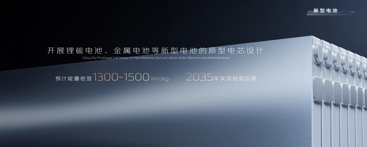 发展新型电池,探索新技术,高能出行。目前,长安汽车正在开展锂硫电池、金属电池等新型电池的原型电芯设计,预计能量密度将突破1300-1500Wh/kg,力争在2035年实现搭载应用。