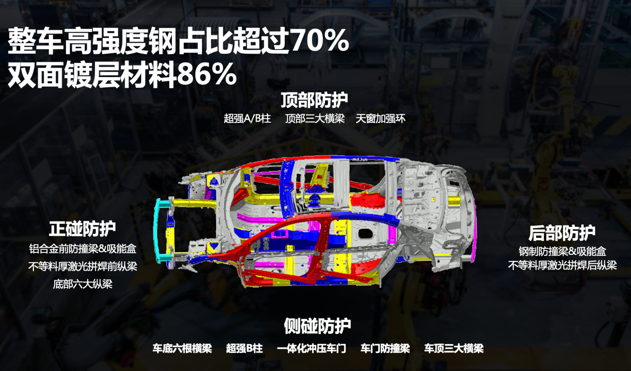 区别于传统焊接工艺,激光焊接可以达到两块钢板之间的分子结合,焊接后的钢板强度相当于一整块钢板,能够大大提升车身强度以及抗扭曲、抗变型的能力,从而提高整车的安全性,堪称移动的钢铁堡垒。