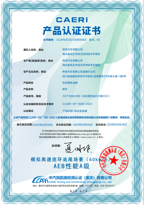 不止是在车身用料、车身工艺、车身结构这些被动安全方面显眼,在主动安全方面,法系车同样显眼。2023年5月9日,中国汽研发起了国内首次高速连环追尾主被动安全联合测试,凡尔赛C5 X参与了此次测试。试验通过3台凡尔赛C5 X进行真实场景的高速追尾模拟,最终凡尔赛C5 X在模拟高速连环追尾场景(60km/h)时,AEB性能获 A级认证,实力证明“全球品质”领先行业标准。