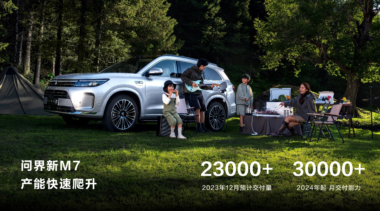 伴随新品的持续热销,赛力斯汽车领先的智造实力又为问界新M7的稳定交付提供了坚实保障。目前,问界新M7产能在快速爬升,预计今年12月交付量可达23000+台,2024年起月交付能力可达30000+台,快速缩短新车交付周期,减少用户等待时间,不负消费者期待。