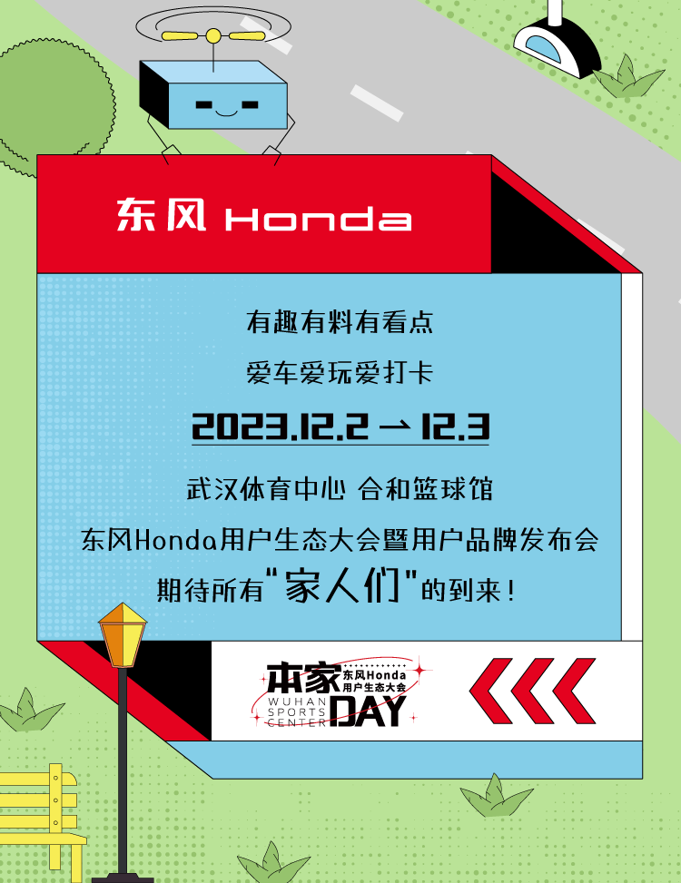 Everybody!准备好加入这场盛大的派对了吗?12月2日-3日,武汉沌口体育中心,东风本田与你一起,开启这个充满活力、惊喜连连的“本家DAY”。