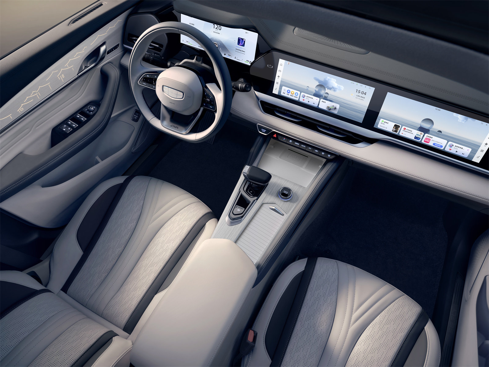 在其他配置上,星越L智擎基本上把能给的全都给了,标配的L2系统、头枕扬声器、高级内饰用料,双12.3英寸屏幕,8155芯片等一个不少。可以说星越L智擎版的两个配置的基础配置是非常高的。