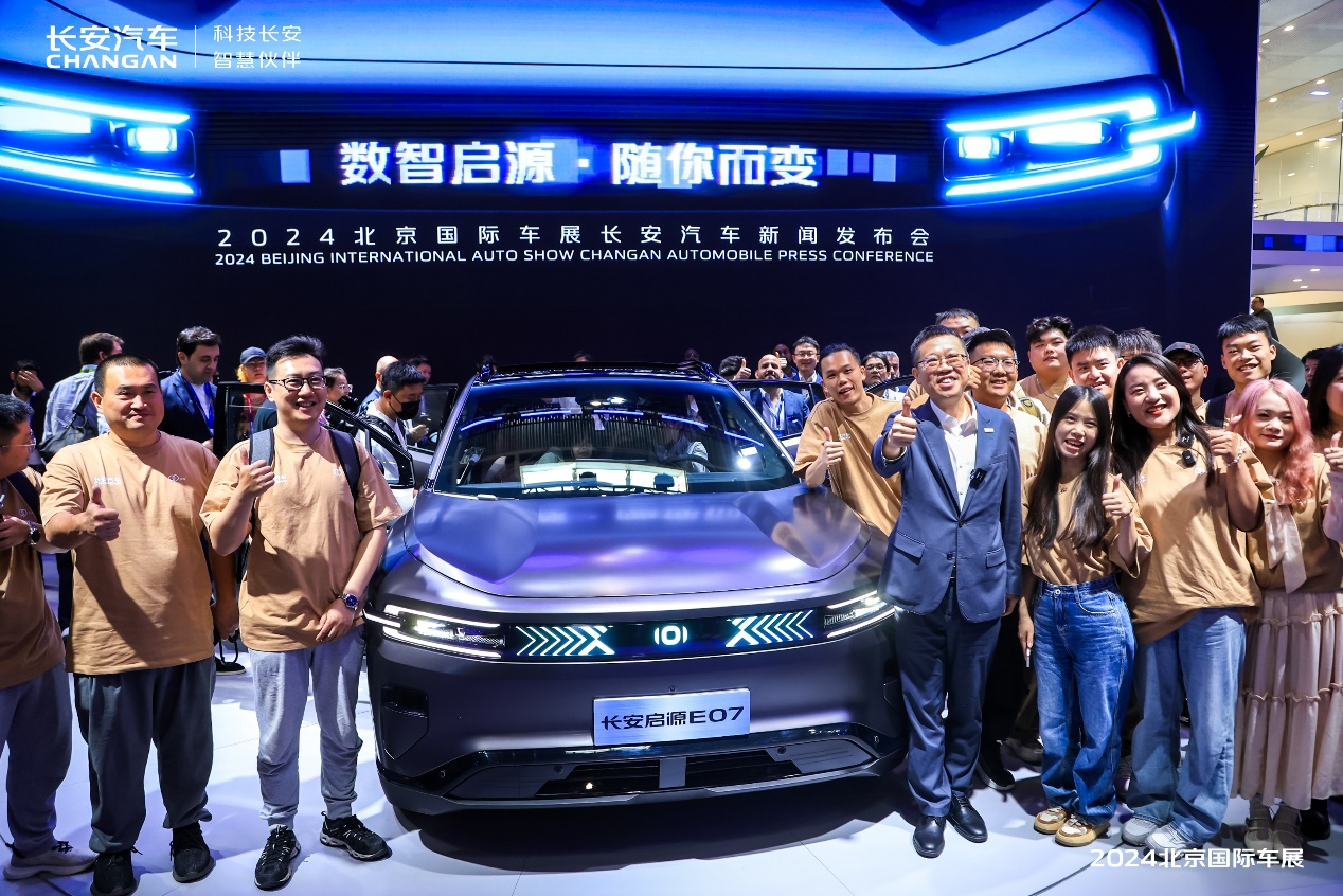 上午9时,长安汽车展台人潮涌动,一场与车展主题相呼应的发布会打响了新汽车“第一枪”。“我们带来了长安定义的首款新汽车——长安启源E07。它首先是一台中大型高端智能电动SUV,还是一台可进化的汽车机器人,更是一个数字世界和物理世界互联互通的平台。”发布会上,长安汽车总裁王俊以形态可变、功能可变、软件可变三大特征概括这款新汽车的典型特征,并发布新车权益。长安启源E07的到来,喻示着全球首款量产“可变新汽车”的诞生,代表长安汽车在数智新汽车领域再下一城,为长安汽车造车40年又添一抹荣光。