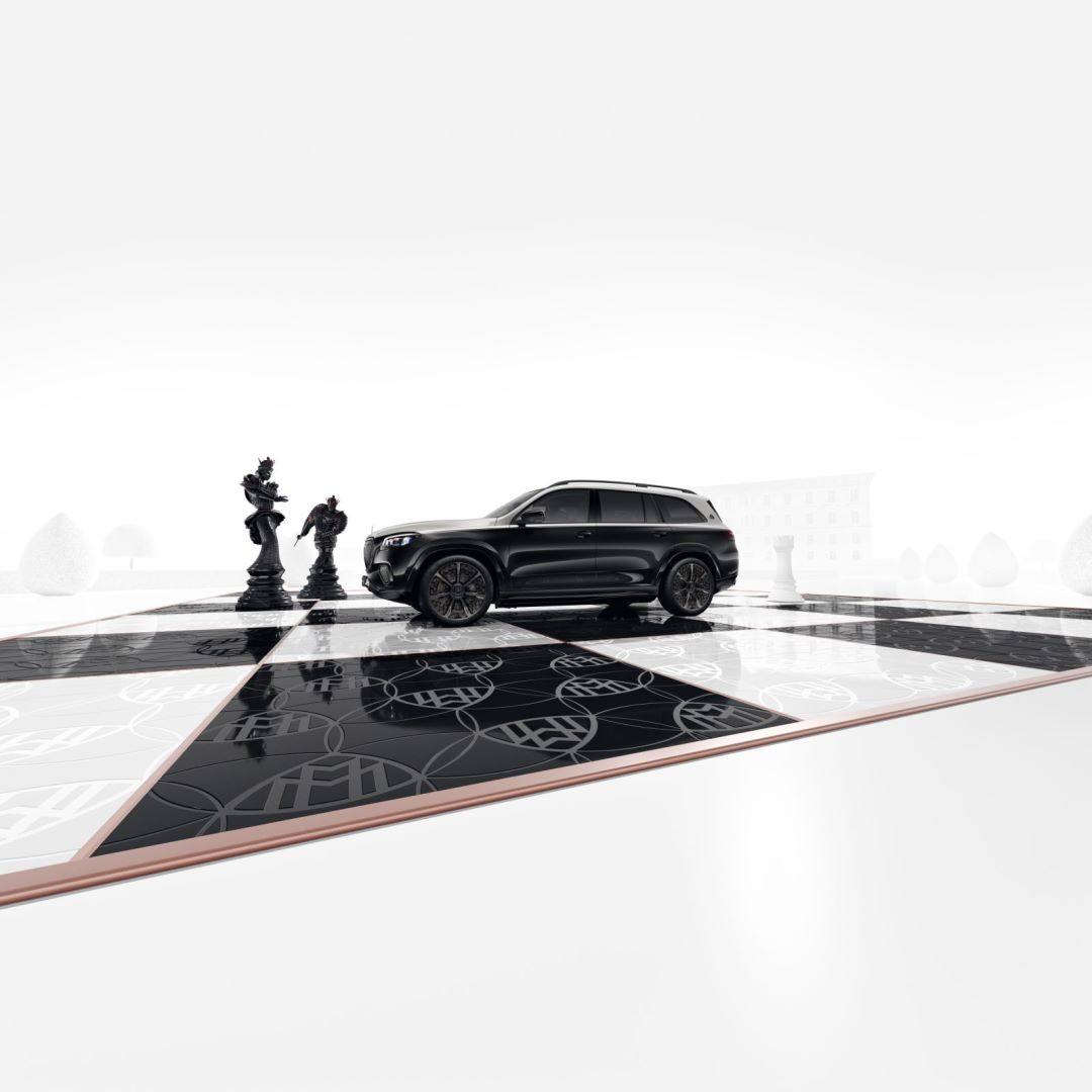 极夜版车型采用前卫大胆的极夜风格组件,三叉星徽立标、迈巴赫竖直格栅、前后保险杠、B柱、车身饰条、车门把手等多处车身细节皆以黑色镀铬元素装点,极夜魅惑气场展露无遗。前大灯以黑色为底,内嵌玫瑰金色,并以迈巴赫徽章点缀其中,散发尊贵血统。