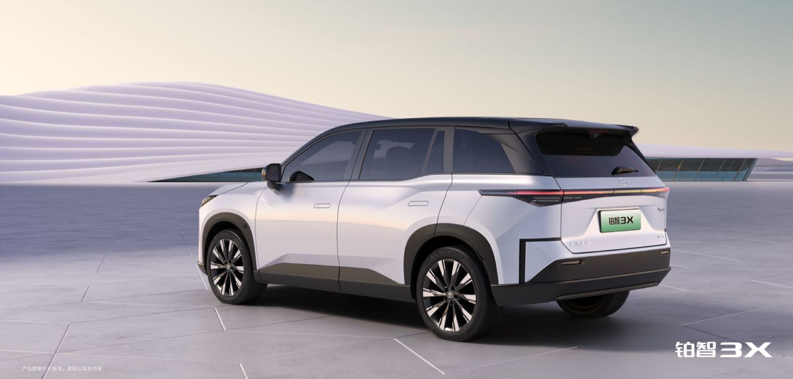 铂智3X定位A+级智能纯电SUV,依托丰田全球标准开发,注入高品质、高耐久性、高可靠性的“大厂原生品质”,为用户带来长久安心的智电新体验。新车启用全新电子电气架构,核心部件实现高水准的小型化、轻量化,为零部件布局创造更高的自由度搭载,纯电续航能力达到600公里;智能座舱搭载高算力车机芯片,配置四音区识别技术并导入语音大模型,在车内任何空间都可见即可说、连续对话;搭载全新智能驾驶辅助系统,通过超视距感知覆盖,配合多融合大模型感知算法,实现全场景智能安全驾驶。