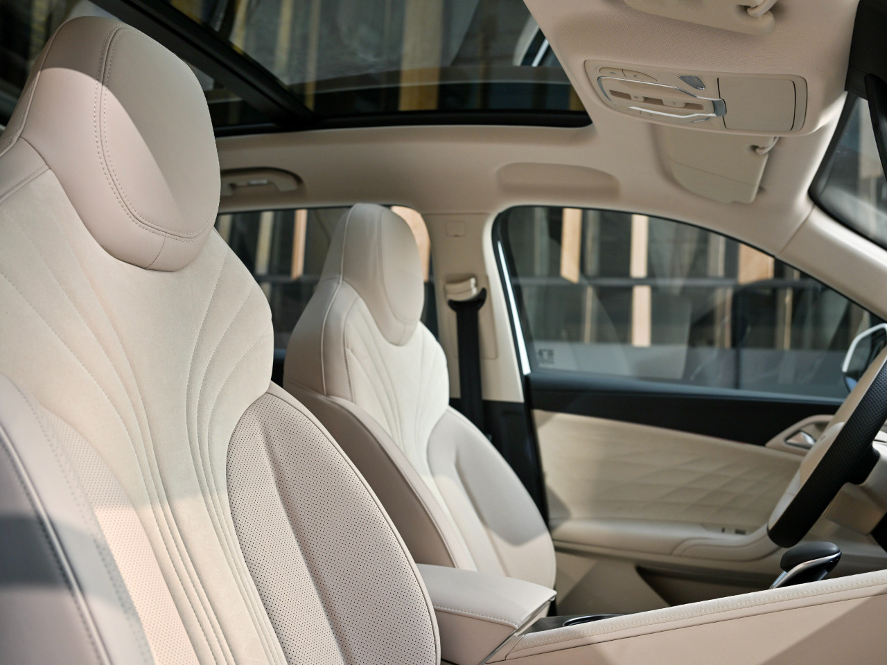 它的前后两排座椅,我可以毫不夸张的说,完全是按照中型车的标准来做的。坐垫长度非常合适,靠背角度也很到位,同时两排座椅的填充泡棉的密度,包括座椅的面料都非常舒服,你不需要知道它用的是什么材料,反正你用手一摸就能知道,这绝对是好东西。