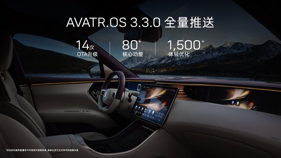 除了服务生态的全面升级,阿维塔产品也在持续更新迭代。阿维塔双车累计OTA了14次,更新了超过80项核心功能,优化了超过1500多项功能体验。本届悦己日上,阿维塔正式宣布双车型AVATR.OS 3.3.0版本的OTA升级,包含声纹复刻、儿童安全座椅控制、HALO屏自定义、鸿蒙Emoji动态壁纸等多项功能。