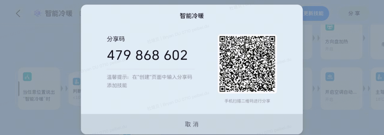 此外,蓝山、高山还新增了呼声较高的技能智造分享功能,用户进入“技能编辑”界面便可编写用车技能,点击“分享”即可生成分享卡片,分享给好友,好友可以通过分享码获取此技能,更加节省时间,同时也能方便用户社交。