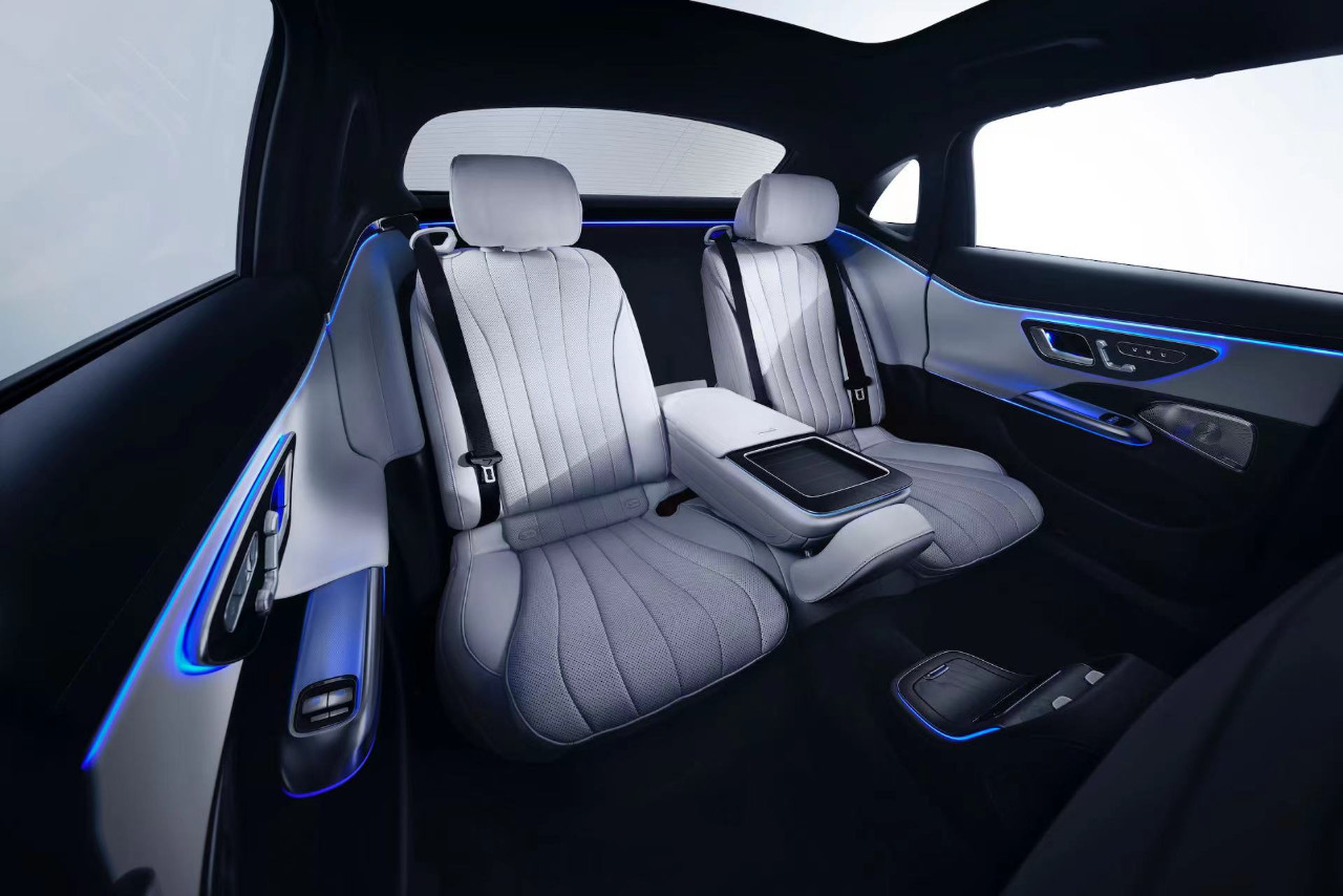 针对商务出行最常乘坐的后排,全新E 350 e L提供超10项中国专属后排豪华增配。打开后门,座椅后排连贯式环绕氛围灯、木饰门板、带氛围灯与木饰的后排延长中控台,提供视觉与触觉的双重享受;落座后排,后排“老板键”可调节前排乘客座椅位置,后排电动可调座椅靠背可调角度高达36度,与旗舰级豪华座驾S级轿车的37度调节相差无几,后排座椅座垫专属加长,还提供电动可调腿托,由此为宾客奉上更加舒适尊崇的乘坐体验;闭目休息,触手可及处,豪华型后排中央扶手宽大舒适,豪华型后排头枕触感柔软,更有后排座椅颈部加热,为尊贵宾客驱散冬日寒凉;源自旗舰轿车的C柱隐私三角窗,令商务洽谈更具私密性,尊贵之感尽显。