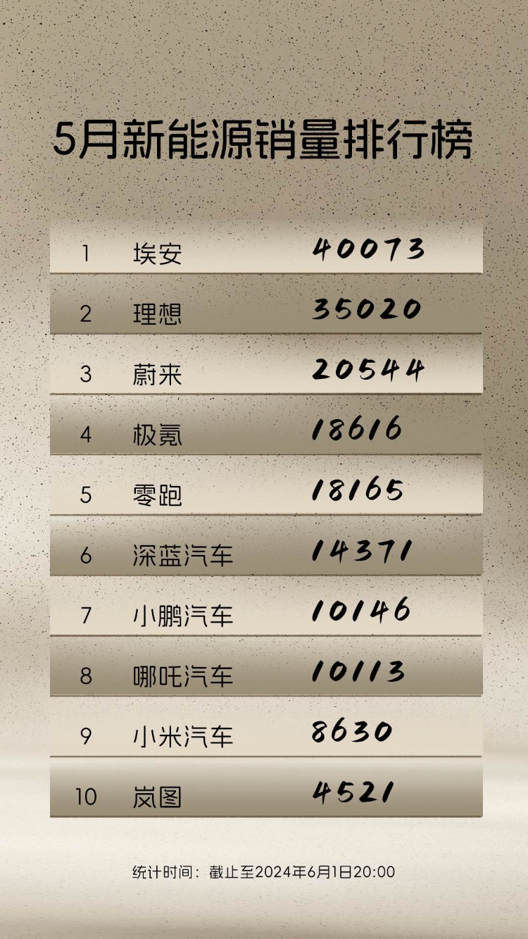2024年6月1日,新能源品牌销量数据公布,广汽埃安5月单月销量共累计达40073台,环比增长的42.5%,在国内新能源市场交出令人满意度的答卷同时,更在海外新能源市场进一步拓展市场份额。