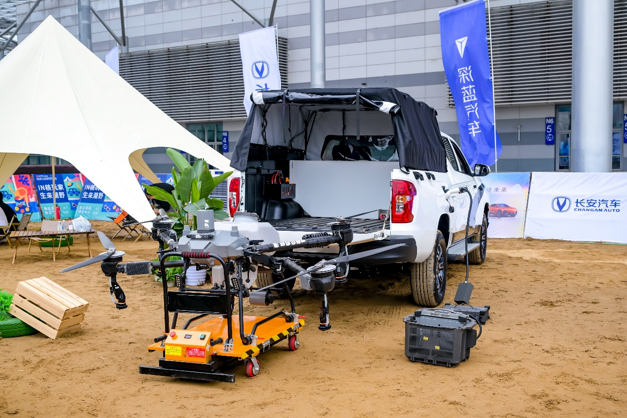 此次长安猎手的上新,不仅体现在技术层面,更在用户体验和场景应用上进行了全方位的创新。皮卡首创的“超级移动发电站”,具备22kW全行业最大放电功率能力,支持全场景边充边放,为行业用户提供前所未有的户外用电解决方案。同时,首次OTA升级带来全新越野体验,以及植保无人机作业车、消防车、房车、宿营车等生态改装系列产品,展现电皮卡的N种可能,赋能千行百业,在为用户带来更多价值的同时,进一步满足多元用车需求。