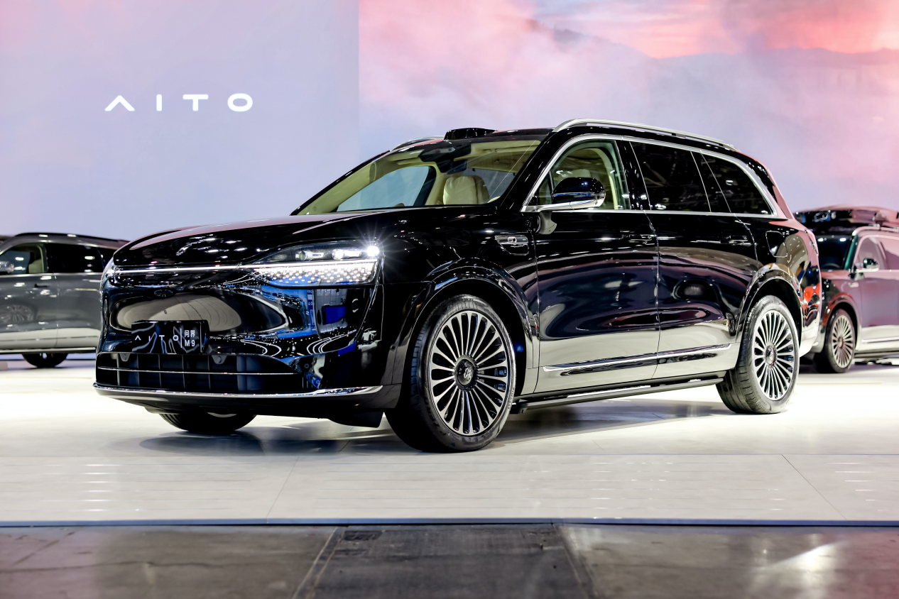 问界M9是AITO问界迄今为止规格级别最高的巅峰产品,是豪华车中的标杆之作。在赛力斯汽车展台,问界M9也由于其出众的豪华感,呈现出别具一格的特殊气质,成为无数媒体、观众打卡的对象。极简的外观设计下,标志性的鲲鹏展翼前脸将百万像素大灯HUAWEI xPixel 包裹其中。全车满配可搭载10块屏幕,结合HarmonyOS 4实现多人多屏多设备交互。全新1.5T增程器4.0、百万豪车级全铝合金底盘、全封闭式空气悬架+CDC电控减震器系统等配置,更让问界M9引领智慧、豪华出行的新纪元。