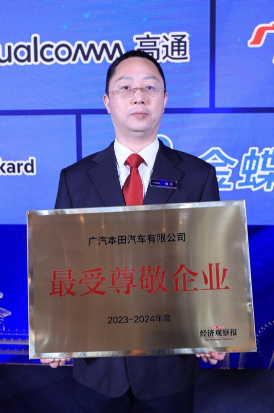 广汽本田荣获《经济观察报》“最受尊敬企业”奖