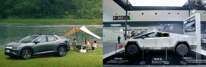 在软件架构上,启源E07和Cybertruck拥有全球唯二的中央环网架构,带来更高的车辆控制安全冗余。“数智前脸”独具特色的P1.5 mini LED交互显示屏,让“汽车机器人”面部表情更丰富,多维灯语与环境实现对话,可大幅增加车辆行驶安全。而Cybertruck的赛博设计更偏向大胆、前卫,车身线条十分锐利,酷是酷,但让重视实用和舒适的用户接受起来,有点难度。