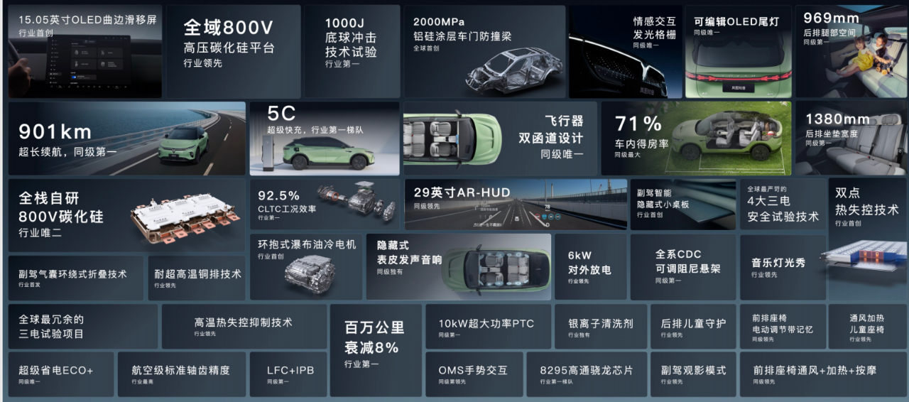 得益于全域800V高压碳化硅平台,岚图知音电驱工况效率高达92.5%,技术实力和传递效率行业第一。99.4%的电控最高效率,则会让车辆反应更快、性能释放更极致,每一度电都不浪费。