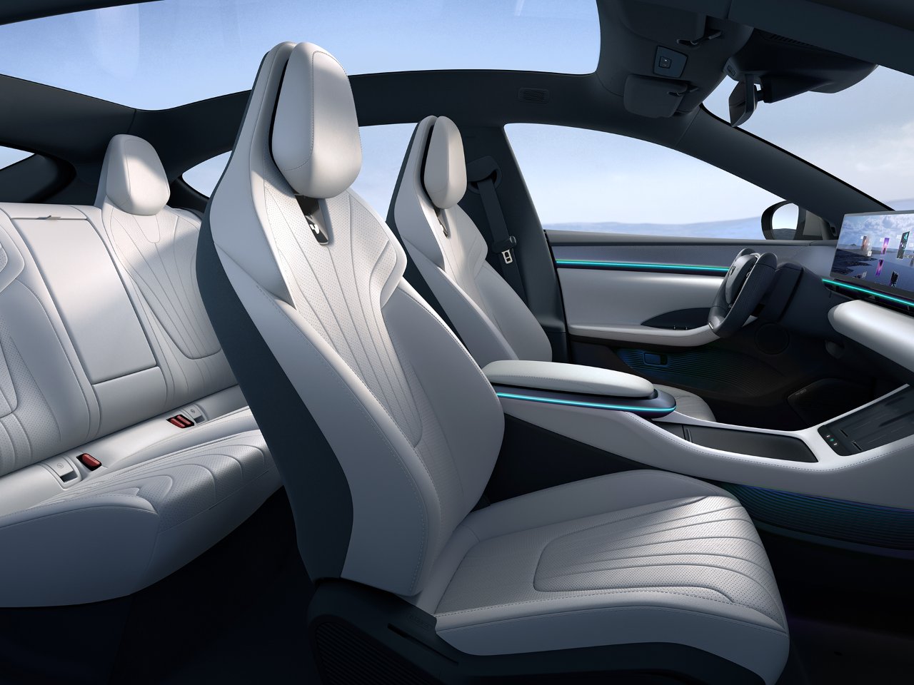 接下来聊聊它的基础性能。3个版本,其中一个CLTC续航高达880公里,另一个双电机版本有721匹马力和3.5秒的零百加速。可以说要续航要动力,它都给全了。至于科技感,这车的科技感是遍布全车的,甚至在某些细节上做得有点激进,例如它取消了实体门把手,改为B柱和C柱上的按钮,以及语音控制方式开门。这些细节尽管很科技感,但对于一些人来说,这也可能过于激进了。