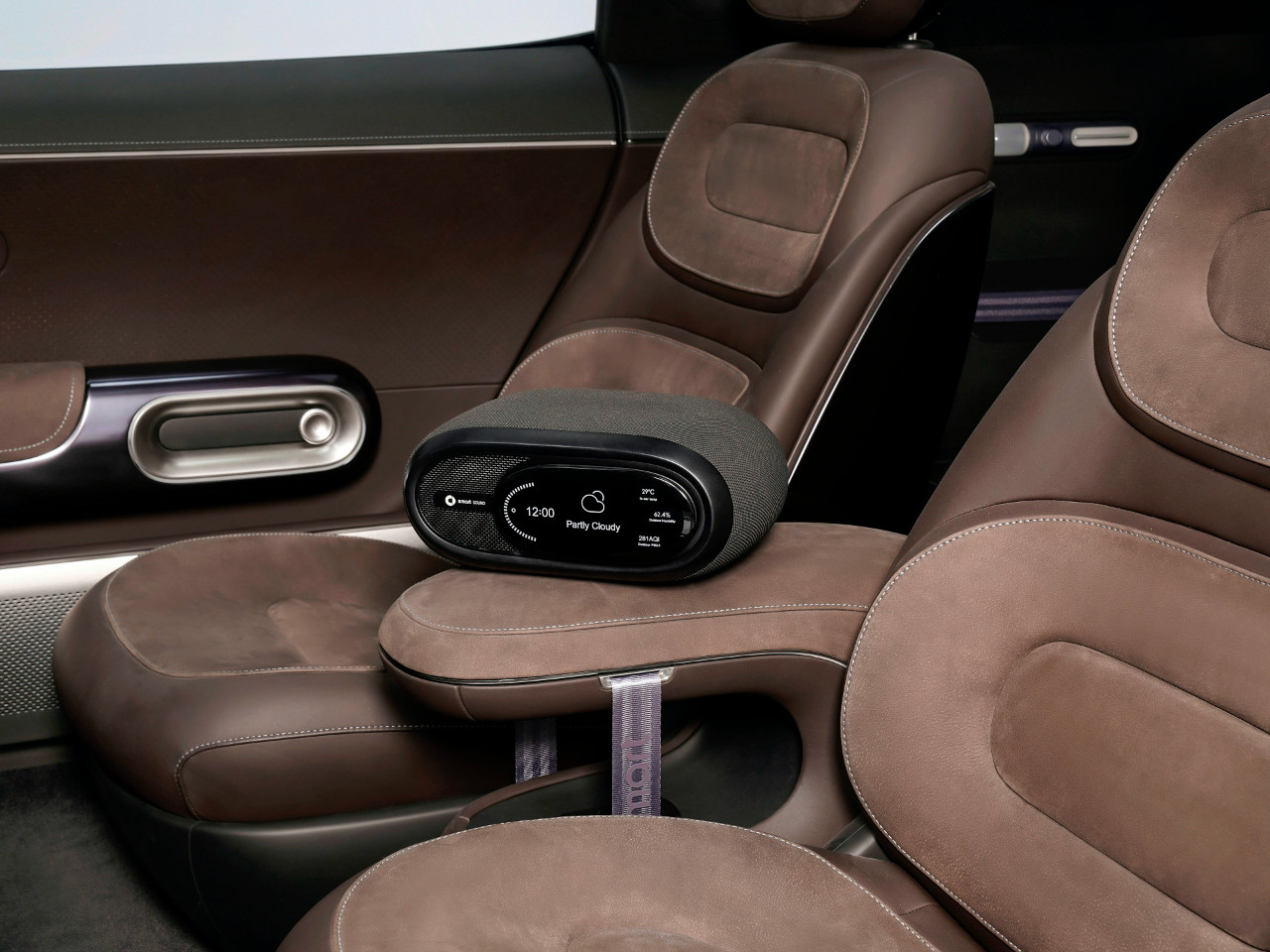 至于舒适性配置自然是一个不少,零重力座椅之类的已经是同级标配了。这里需要注意的是,在精灵#5 C柱位置有一个小LOGO,写着“Styled by Mercedes”,这车无论外观还是内饰设计,都是由奔驰全球设计团队操刀了,它也可以算是当下所有Smart里面“含奔驰量”最高的车款了。