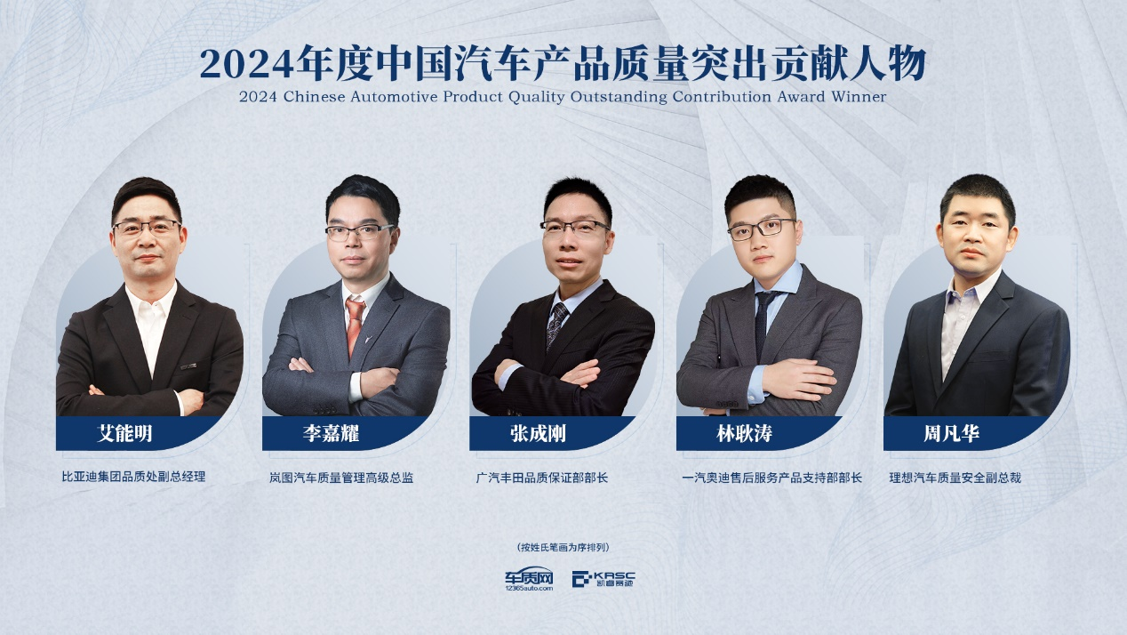 经过6个多月的走访调研,5位佼佼者获得2024年度中国汽车产品质量突出贡献人物奖,他们坚持体系创新和价值引领,带领团队以用户差异化体验需求为导向,拓展基础高频场景的宽度和深度,以前瞻的行业洞察、灵活的质量管理机制,为用户提供更高品质的产品,提升企业韧性,并为行业带来应对质量挑战的新思路。