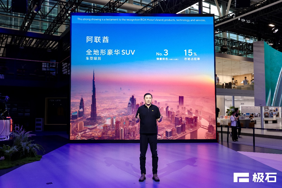 立足中国、放眼世界。从今年4月首次亮相阿布扎比车展至今,极石汽车已经在阿联酋、卡塔尔、哈萨克斯坦等20多个国家建立了销售服务网络,涵盖中东、中亚、非洲、东南亚、拉丁美洲五大新兴市场,海外交付及订单量超过一万台。在中东最重要的汽车市场阿联酋,今年1-10月极石01的销量高居全地形豪华SUV第三位,市占率超过15%。凭借安全、舒适、可靠的硬实力,极石01已入列阿联酋警察局指定用车。身为一个年轻的品牌,极石汽车的产品、技术、服务,已经在中东高端市场得到了认可。