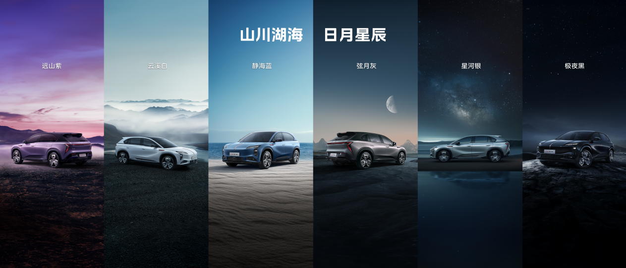 天工08不仅展现了现代汽车工业的科技魅力,还诠释了东方美学的内涵精髓。天工08的色彩理念取自于“山川湖海,日月星辰”,共有远山紫、云溪白、静海蓝、弦月灰、星河银、极夜黑6款颜色。以远山紫配色为例,其颜色来自唐代诗人韦应物的“远山含紫氛,春野霭云暮”,既流淌着东方的气韵与文化,又承载着人与自然和谐共生的美好期许。