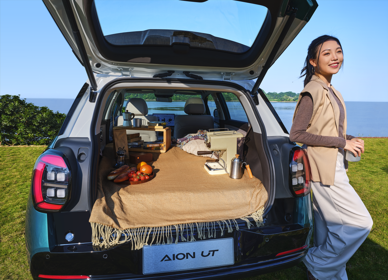 如果将后排座椅完全放平,其后备厢容量可扩充至1600L,放下露营游玩所需的折叠自行车、座椅、床垫、天幕等装备自然不在话下,甚至搬家运载冰箱等大件物品,也能放心交给埃安UT鹦鹉龙去完成。