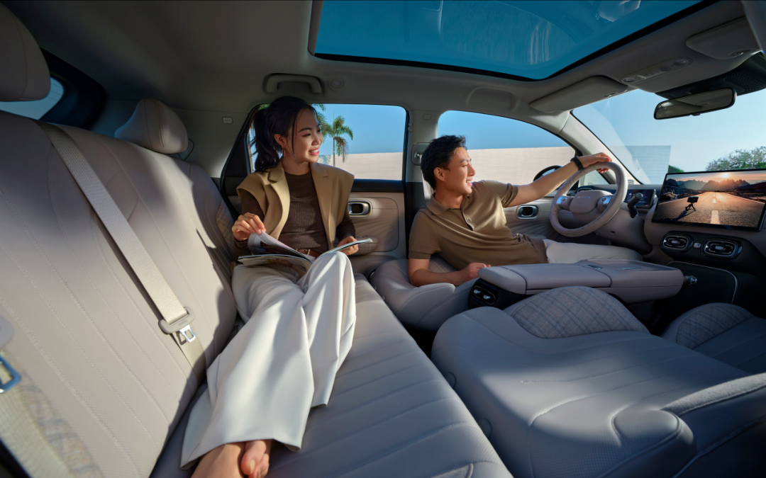 当比亚迪海豚还在用四六分割放倒靠背的时候,埃安UT鹦鹉龙已经可以把前后排靠背都平整放倒,让座椅秒变大床。这样一来,用户就可以仅放倒前排座椅靠背,让后排座椅与前排座椅合体,变成带有宽大靠背的大床,让车厢成为不输自家客厅的观影空间,通过中控大屏在车里舒舒服服地看一部电影。