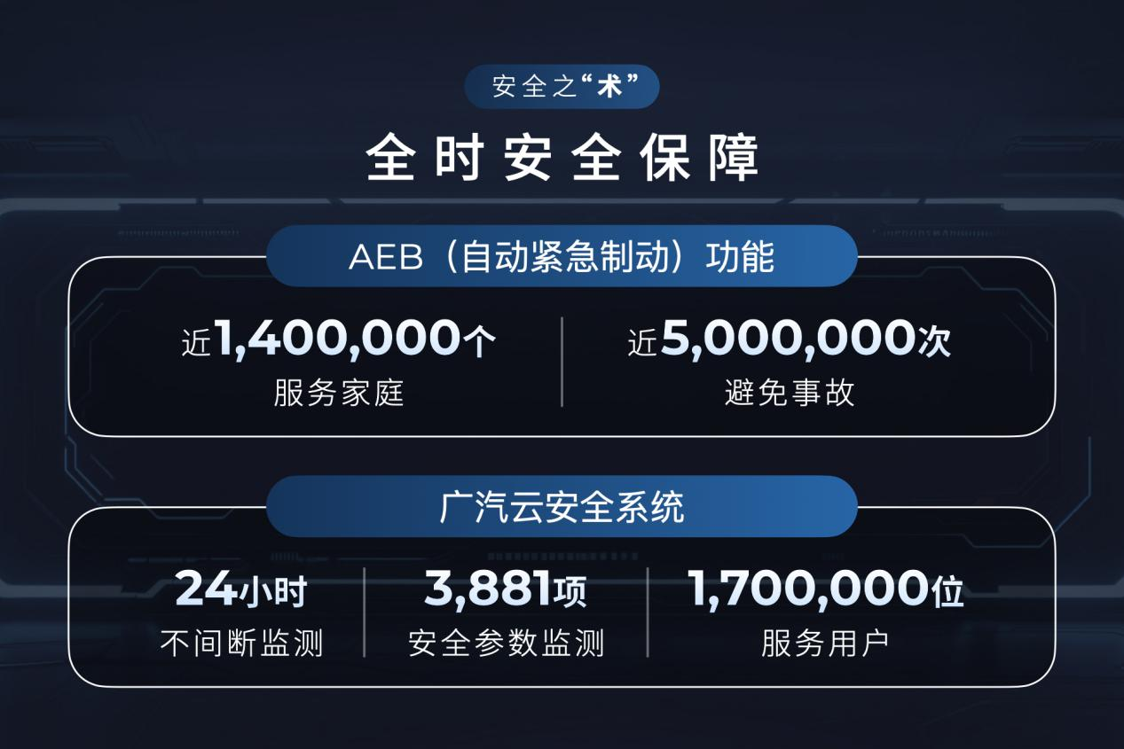 此外,广汽提供了主被动融合安全技术保障。广汽搭载的全栈融合感知系统和主动安全技术,在碰撞前通过雷达和摄像头提前识别风险,在 700毫秒内实现躺姿座椅回位,同步启动坐垫气囊、预紧安全带,全方位保护乘员安全。而广汽首创的安全气囊融合点爆技术可以实现不同碰撞强度下的精准点爆,配合国内车企中首创的后风窗气囊和二排正面气囊,真正实现720度无死角守护。此外,广汽笼式盾甲车身结构、一体式热成型双门环抗撞结构、六边形蜂窝状多胞吸能结构等设计,共同为用户构建了坚固的安全防线。