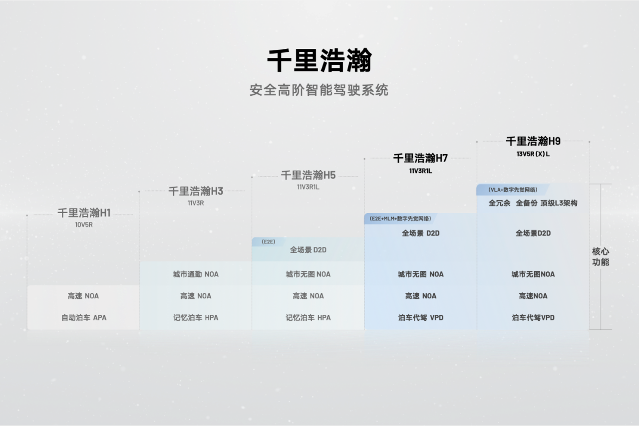 在智能驾驶上,吉利自研的千里浩瀚智驾系统同样将安全与智能完美融合。从高端到入门,千里浩瀚智驾让技术普惠每一位用户,实现智驾平权。通过从毫秒级反应的AEB,到卫星预警的全局守护,千里浩瀚智驾更是为每一位用户实现了安全平权。