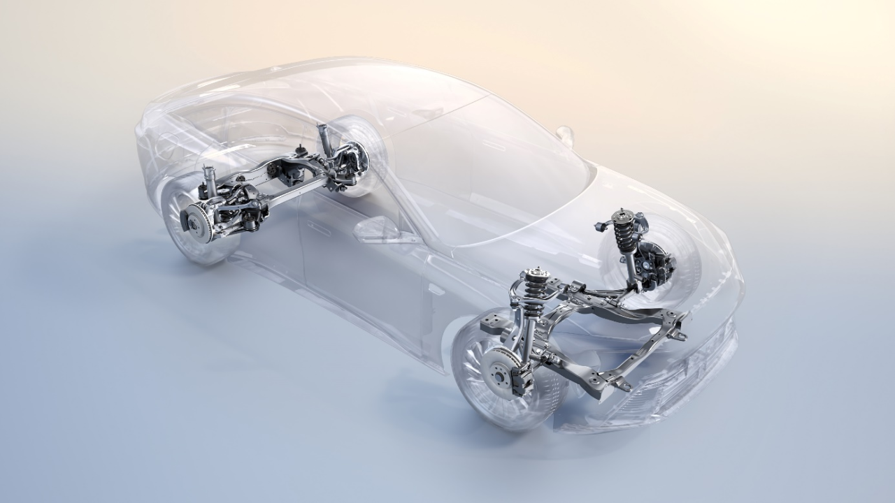 至境L7采用前双叉臂、后五连杆悬架结构
