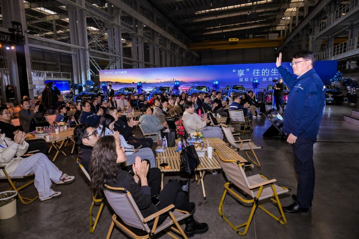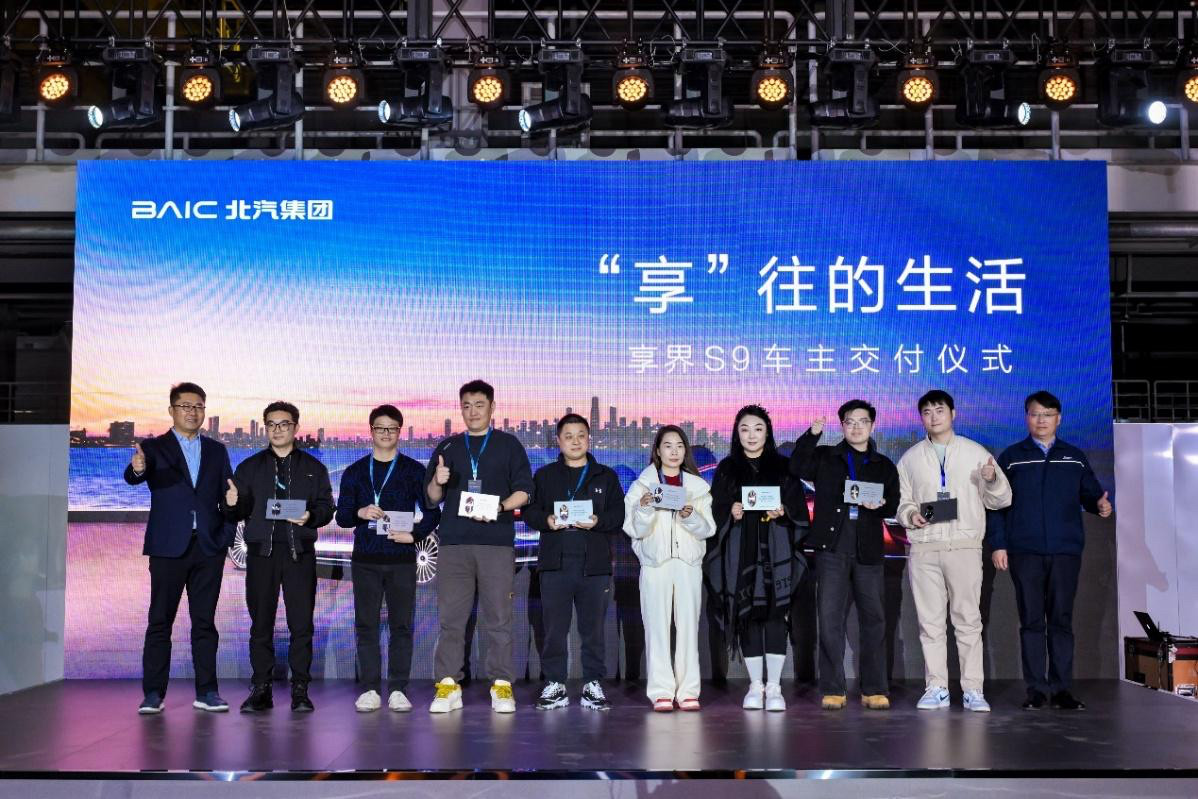 如果说前面的环节是铺垫,那么交付仪式就是整场旅程的情感高潮。品牌高管亲自为每位车主颁发寰宇星标车主牌,金属质感的牌面上,刻着真挚的感谢语——这不仅是车主身份的象征,更是车主与S9、与享界品牌的专属羁绊。北汽新能源副总裁孙贵洋的致辞戳中人心:“享界的用户,是高品质人群里,最讲格调、最会挑的一群人。选择S9,是眼界的天花板,更是境界的新高度。”从倾听心声到定制惊喜,享界才是真正的懂用户。