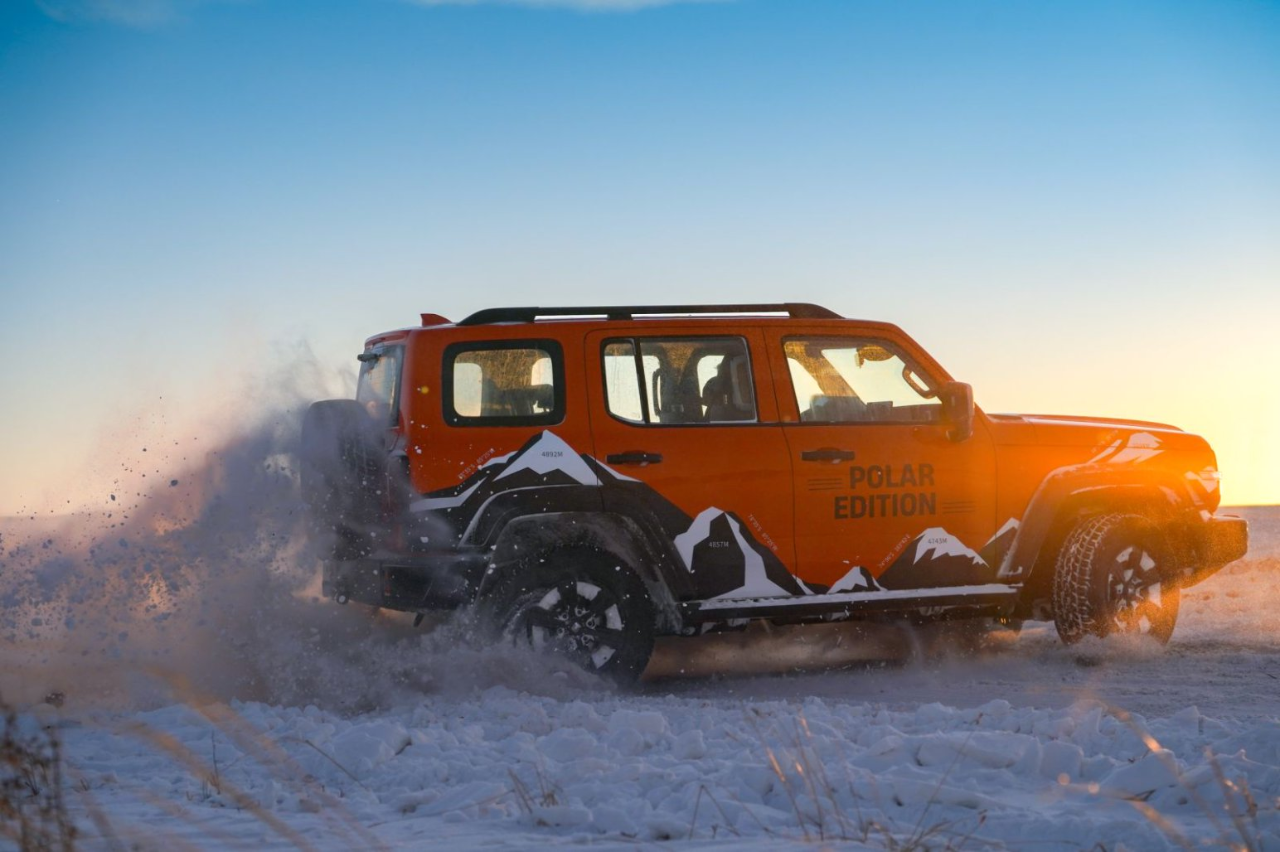 在坦克300素车可靠品质的基础上,极地版进一步强化其稀缺身份和极地属性。来自用户投票与共创的“极地橙”车色、“极地荣耀”徽章与“极地锋芒”拉花等稀缺元素,全部上车;可远控的前风挡加热、雨刮喷嘴加热、AT全地形轮胎、电子遥控绞盘等用户倾心的极境配置,一应俱全。通过在设计、装备等维度的强化,极地版不仅延续了坦克300的硬核基因,更以纵横全域的实力,持续引领越野潮流。