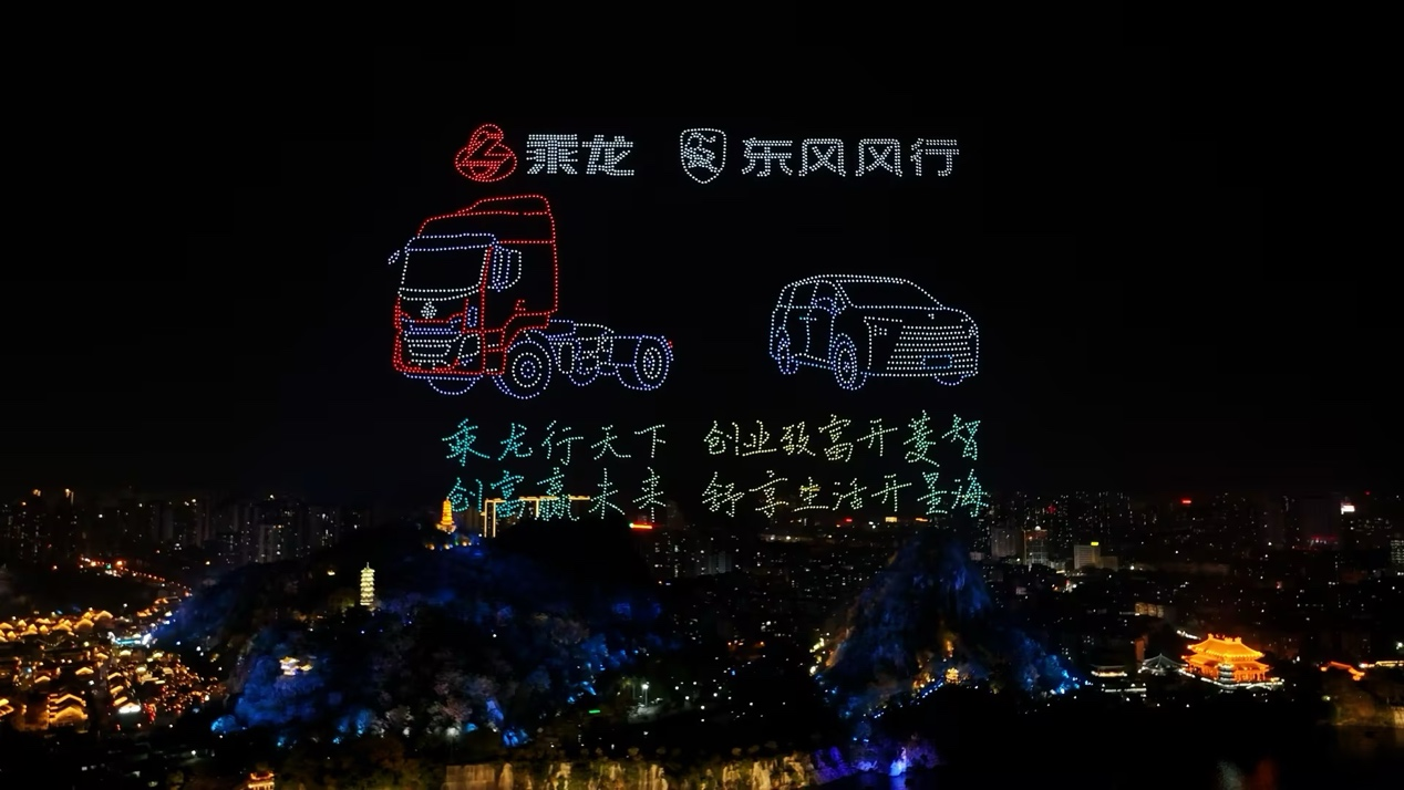当暮色彻底漫过古镇,柳州最大规模的无人机编队骤然升空,3500架无人机集结成阵,以天为幕、以光为笔,依次点亮柳宗元、风雨桥、文庙等柳州文化符号,最终聚焦1954年东风柳汽诞生的坐标与“乘龙”“风行”品牌标识。这场夜空表演,是“乘龙行天下”的壮志与“心怀星海 共赴美好”的温暖交织,诉说着品牌与用户的深厚情谊,为盛会添上浪漫震撼的底色。