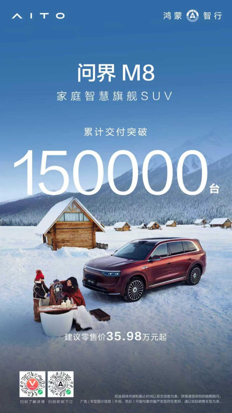 15万辆里程碑达成 问界M8筑牢40万级豪华SUV销量标杆