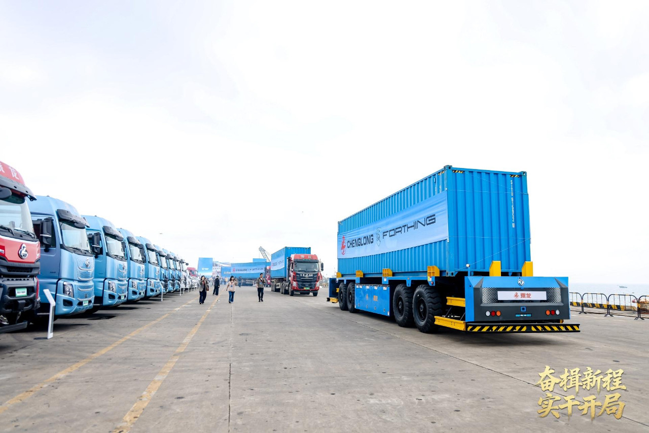 在系列签约与新品发布后,活动迎来了备受关注的智能作业展示环节。在开工指令发布之后,智能卡车随即启动装载集装箱,与自动化港口装备协同完成吊装上船作业,车与船鸣笛呼应,直观展现了“汽车智造+港口物流”融合的新质生产力。活动当天下午,船舶搭载着一批T5 EVO KD散件集装箱缓缓从钦州港离泊驶向柬埔寨。同时,在3月5日也将有47辆东风柳汽乘用车(星海S7、星海V9、M4),从北部湾港出发,直达阿联酋杰贝阿里港。