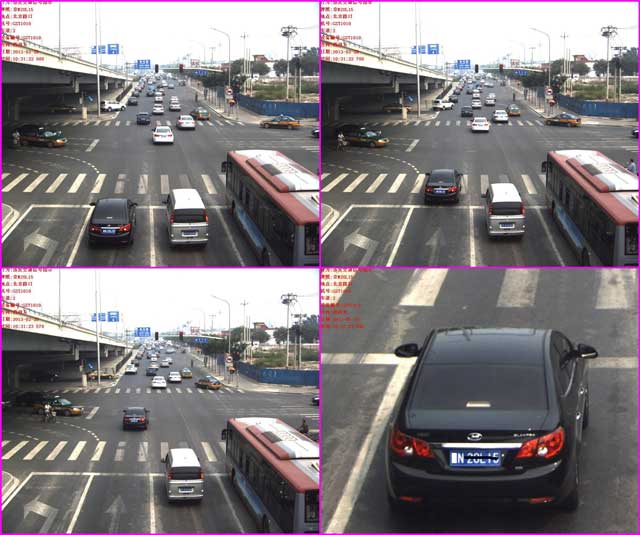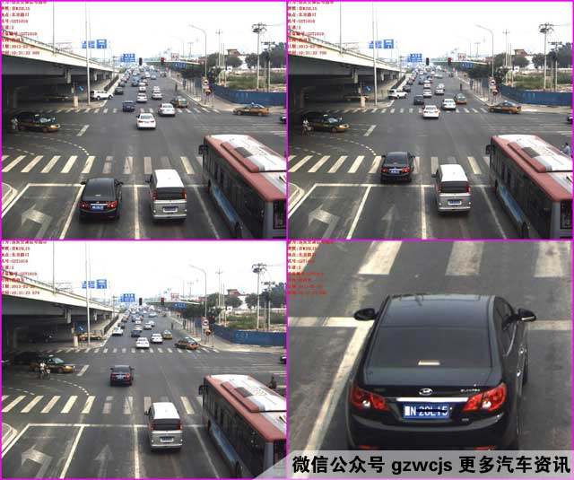 到了办事大厅之后,手足无措的你,可以询问值班的警官,查看违章的录像。下面,教授举个例子说明,闯红灯拍照一般分为三张,请留意下图的黑色轿车。(下图并不是教授朋友的违章截图,只是举例说明。)