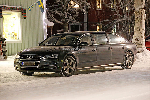 最近在瑞典某住宅区被人发现一辆A8六门版正在路试,这辆A8已经上牌并没有任何车身伪装,就这样停在路边。