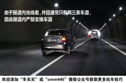 由于隧道内特别是出隧道口光线差,并且通常只有两三条车道,因此隧道内严禁变换车道,请一定按照所在车道行驶,更不能进行超车。