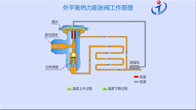 接着,降温到常温状态的制冷剂会进入一个叫膨胀阀(也有的叫毛细管)的小东西里面。这个膨胀阀的结构很简单,从冷凝器这边接进去的口子大,另外一边出去的口子很小,就是一个类似锥形的东西。那么制冷剂从一头进去,另外一头出来的时候,因为压力差变化剧烈,会丢掉很多温度,瞬间就会变成很冷很冷的气态物质。