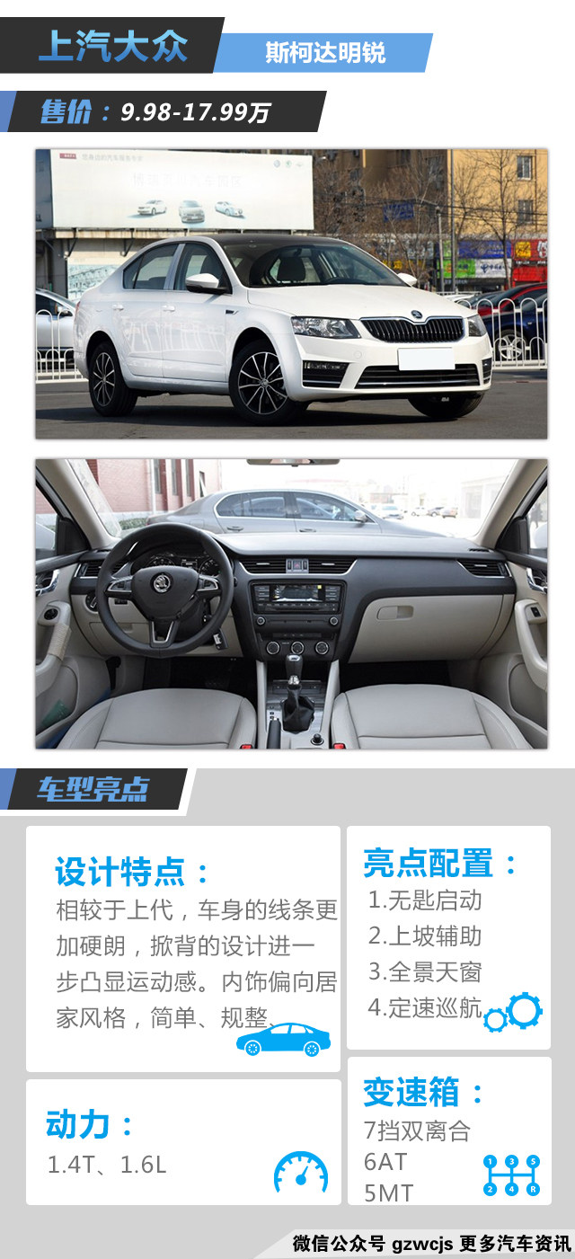 【点评】独特的掀背式设计让明锐的后备箱容积表现十分不错,尤其在搬运大件物品时更体现出接近SUV的优势。另外,明锐采用了跟速腾一样的PQ35平台,且安全配置十分厚道,而价格却比速腾低了不少。钟爱大众但又追求性价比的消费者,相信明锐会是一个很好的选择。