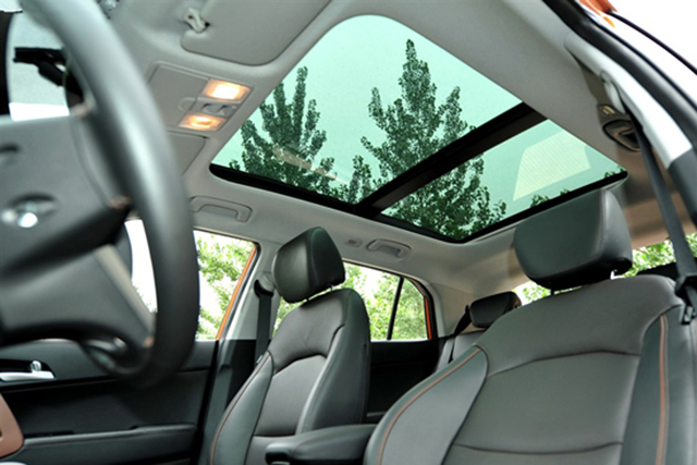全景天窗不可以开启,多少有点遗憾,不过城市空气质量并不太好,一块硕大的天窗还是能带来很好的通透感。