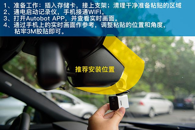 用抹布擦干净你要安装行车记录仪的地方,一般就是在内后视镜后方的挡风玻璃上,尽量往上贴就行,不一定要在正中间,往左、往右一点点其实不太影响,但注意不要太低,会影响驾驶员的视线,也会影响行车记录仪的视野。撕开记录仪支架上的3M胶,直接粘贴到挡风玻璃上,适当用力按压即可固定好,要注意不要贴歪。