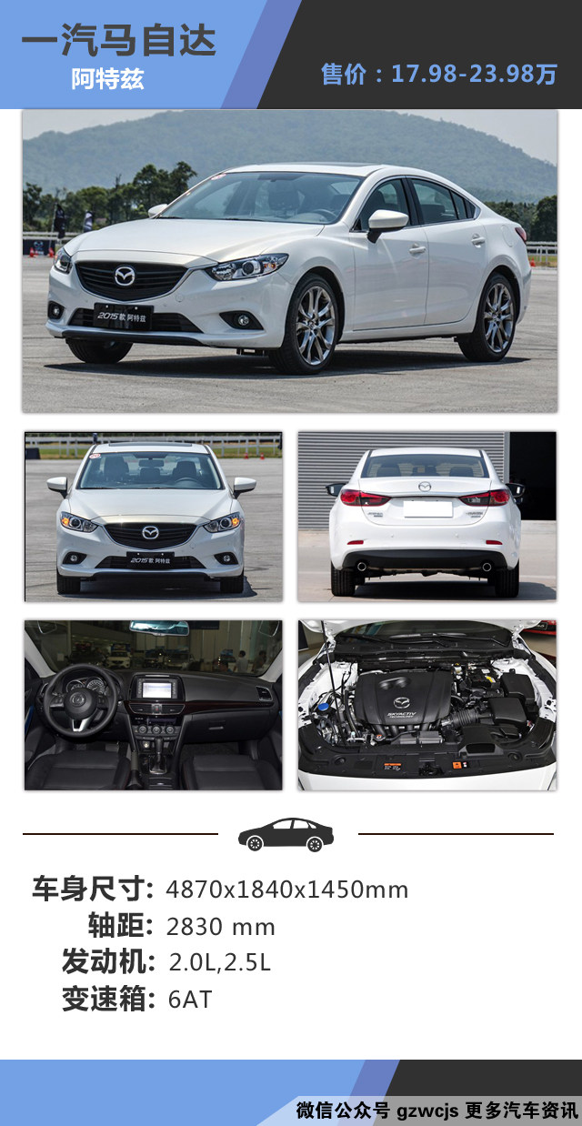 教授点评:阿特兹相信大家都会被其出色的外观所吸引,其前脸采用简洁的线条设计,寥寥数条就勾勒出非常动感的姿势,犹如一头随时扑向猎物的猎豹;同时车身的线条设计流畅且自然,尾部的设计则相对保守一些,不过却非常的饱满且低调,相信让很多人喜欢这样闷骚的设计,内饰设计方面其中控的布局设计比较平淡,触控屏的响应速度有些慢了,假如换上昂克赛拉的互联系统相信会有更多的拥趸喜爱。